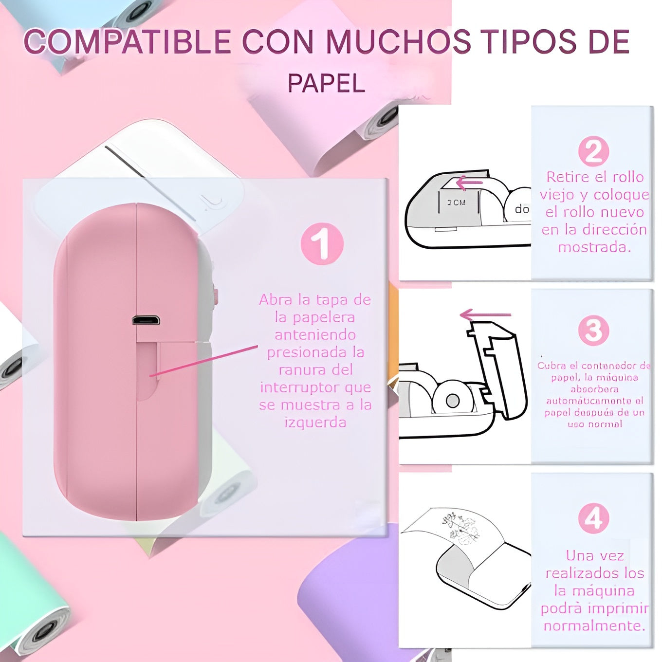 La mini impresora portátil está diseñada para quienes buscan practicidad y eficiencia en su día a día. Gracias a su cabezal de impresión de alto rendimiento, ofrece una salida de papel rápida y fluida, permitiendo imprimir con una sola tecla y sin complicaciones. Su sistema de impresión sin tinta no solo ahorra tiempo y dinero, sino que también es una opción más respetuosa con el medio ambiente.