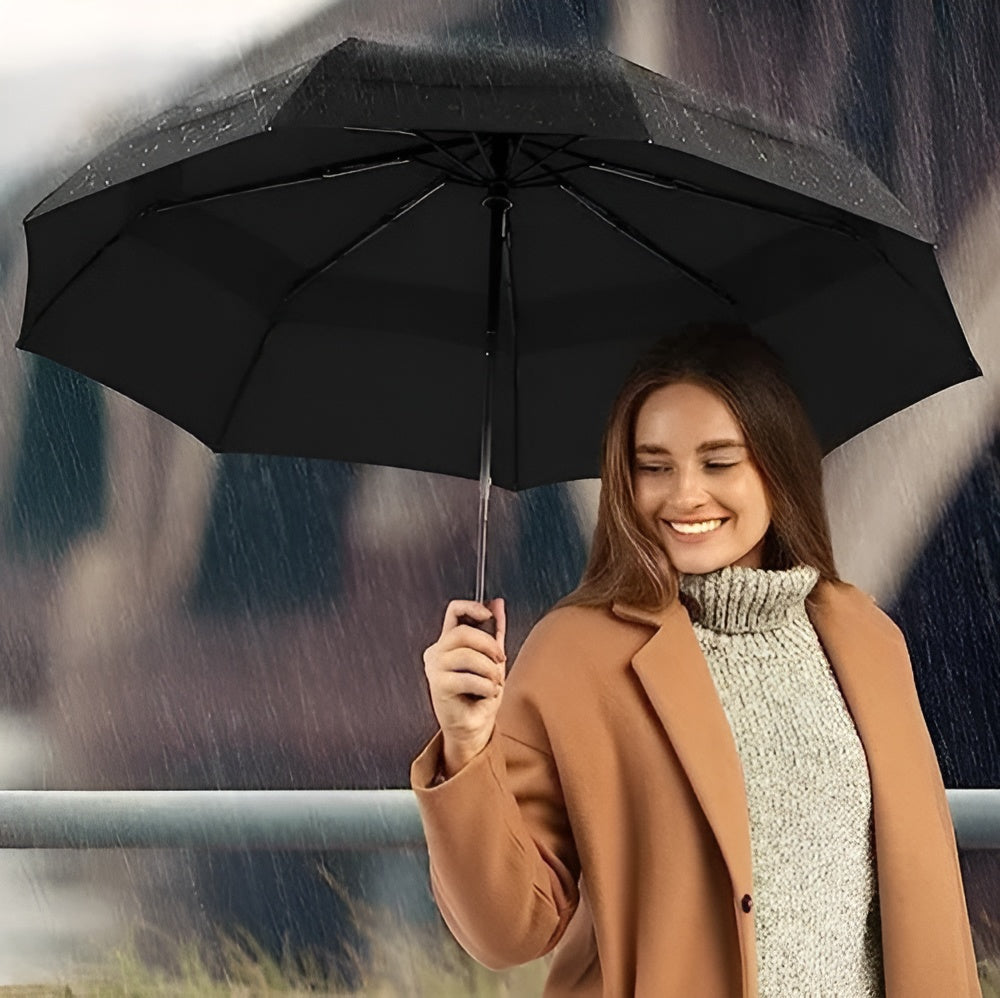 Resistente al viento y la lluvia intensa Equipado con un dosel doble reforzado y mango de goma antideslizante, brinda estabilidad incluso en condiciones climáticas exigentes, manteniéndote seco y protegido.