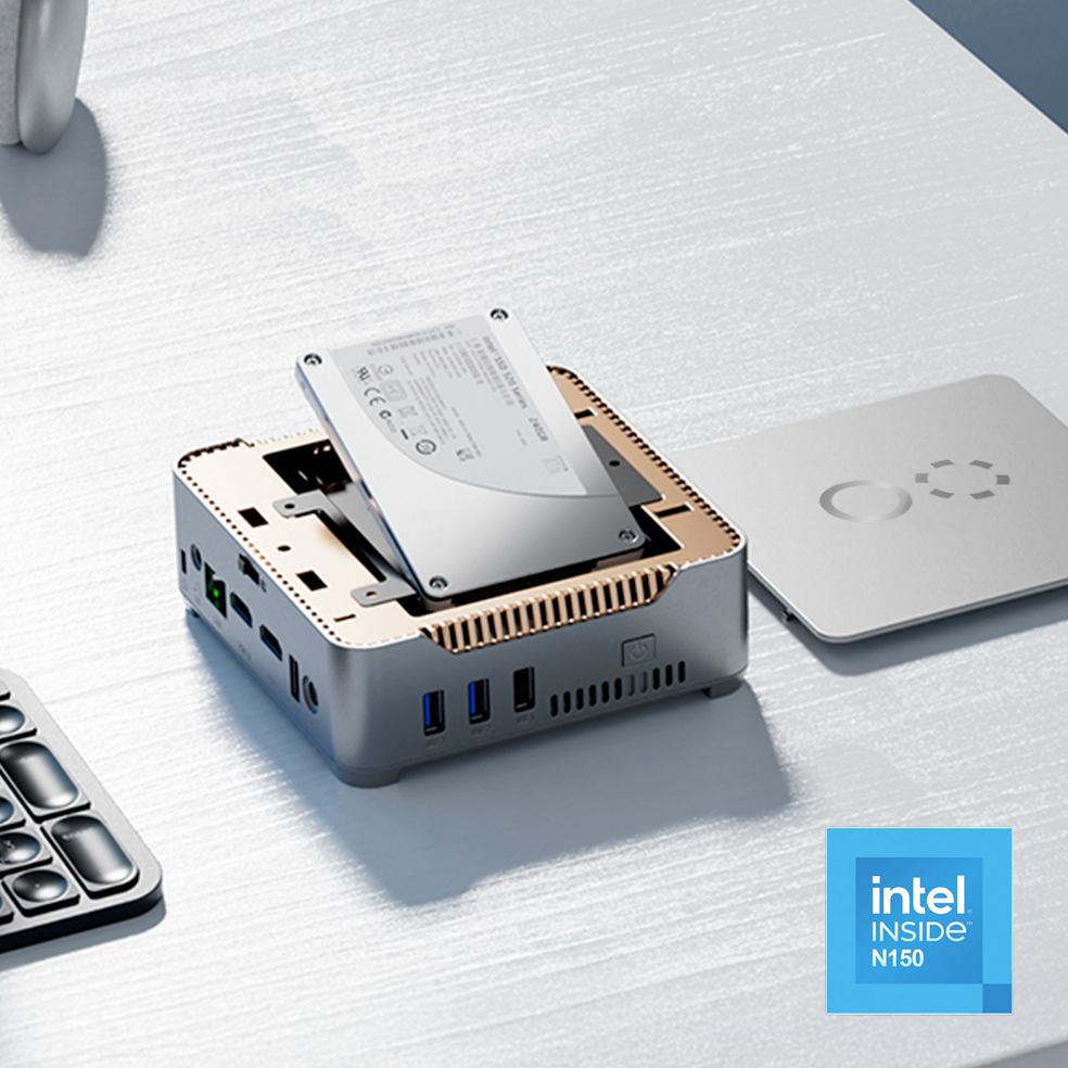 La Mini PC con Intel® N150 es una solución compacta y eficiente para quienes buscan un equipo confiable en tareas básicas del día a día. Con su procesador Intel® N150 a 800 MHz, ofrece un rendimiento estable para navegación web, uso de aplicaciones de oficina, reproducción multimedia y gestión de archivos.