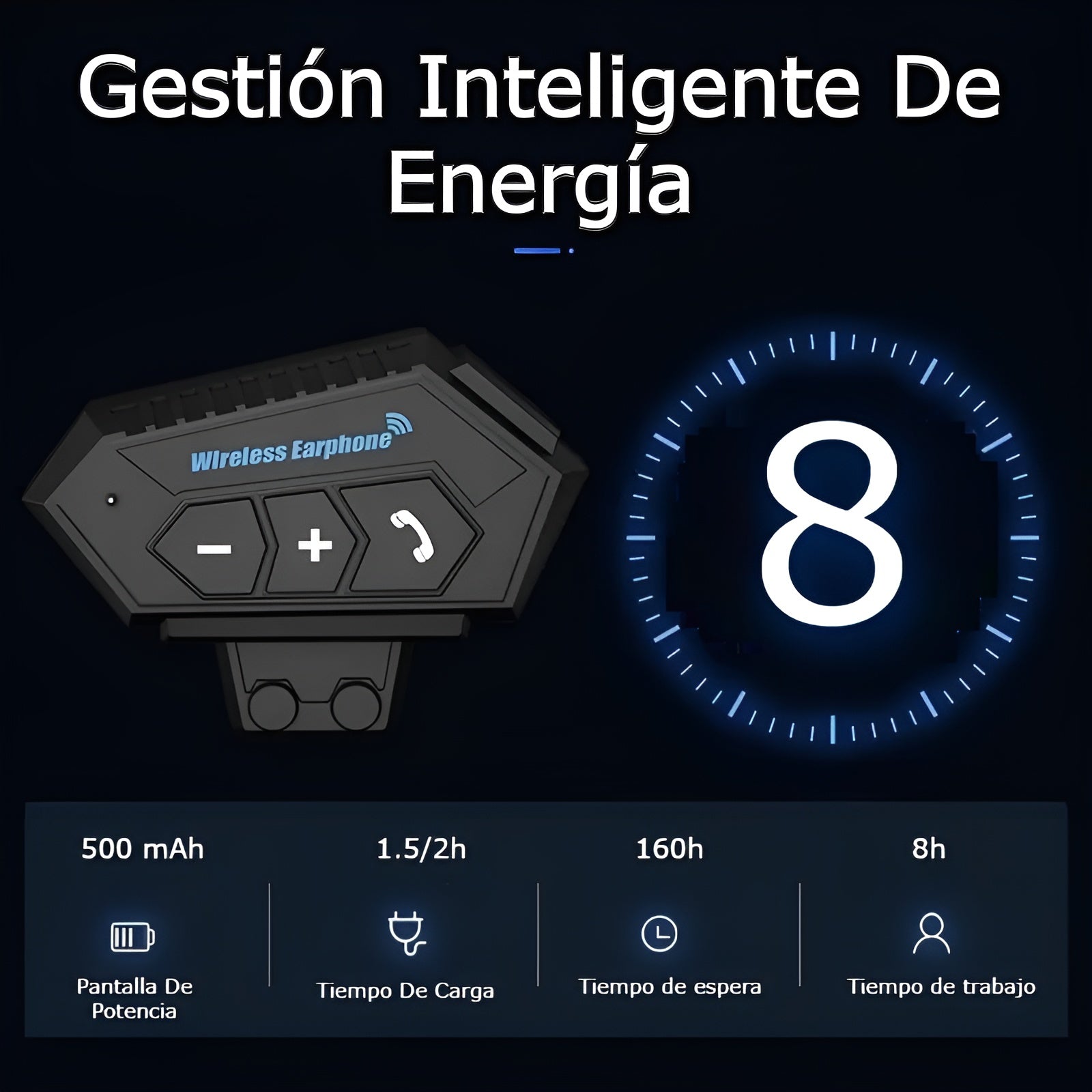Equipados con una batería de iones de litio recargable, ofrecen hasta 8 horas de uso continuo y un impresionante tiempo de espera de 160 horas, ideales para acompañarte en trayectos largos o jornadas intensas. Su estructura ligera y discreta se integra perfectamente al casco, brindando comodidad sin comprometer la seguridad.