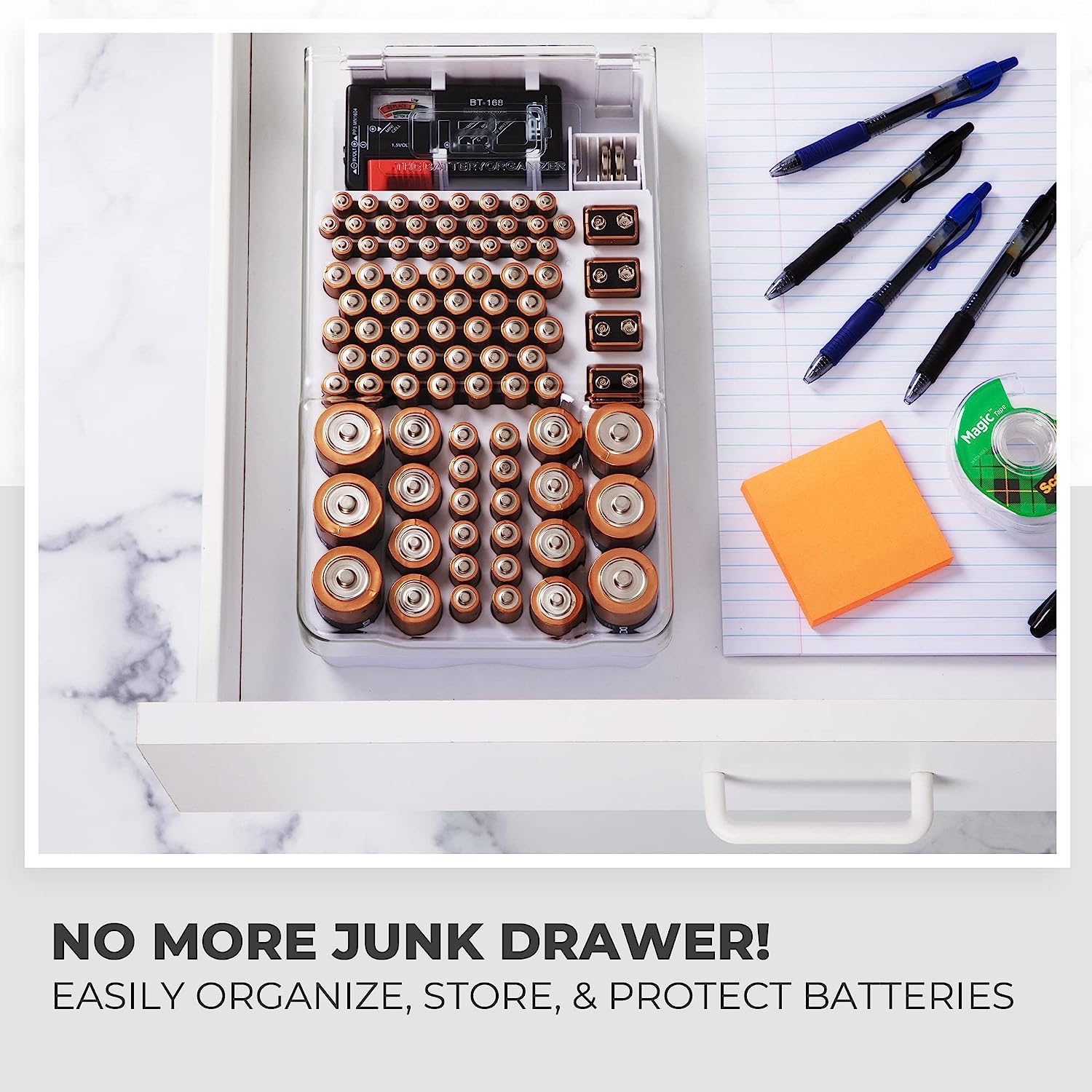 Fabricada de plástico resistente material. ayuda a mantener sus baterías organizado y perfectamente almacenados En un cajón...