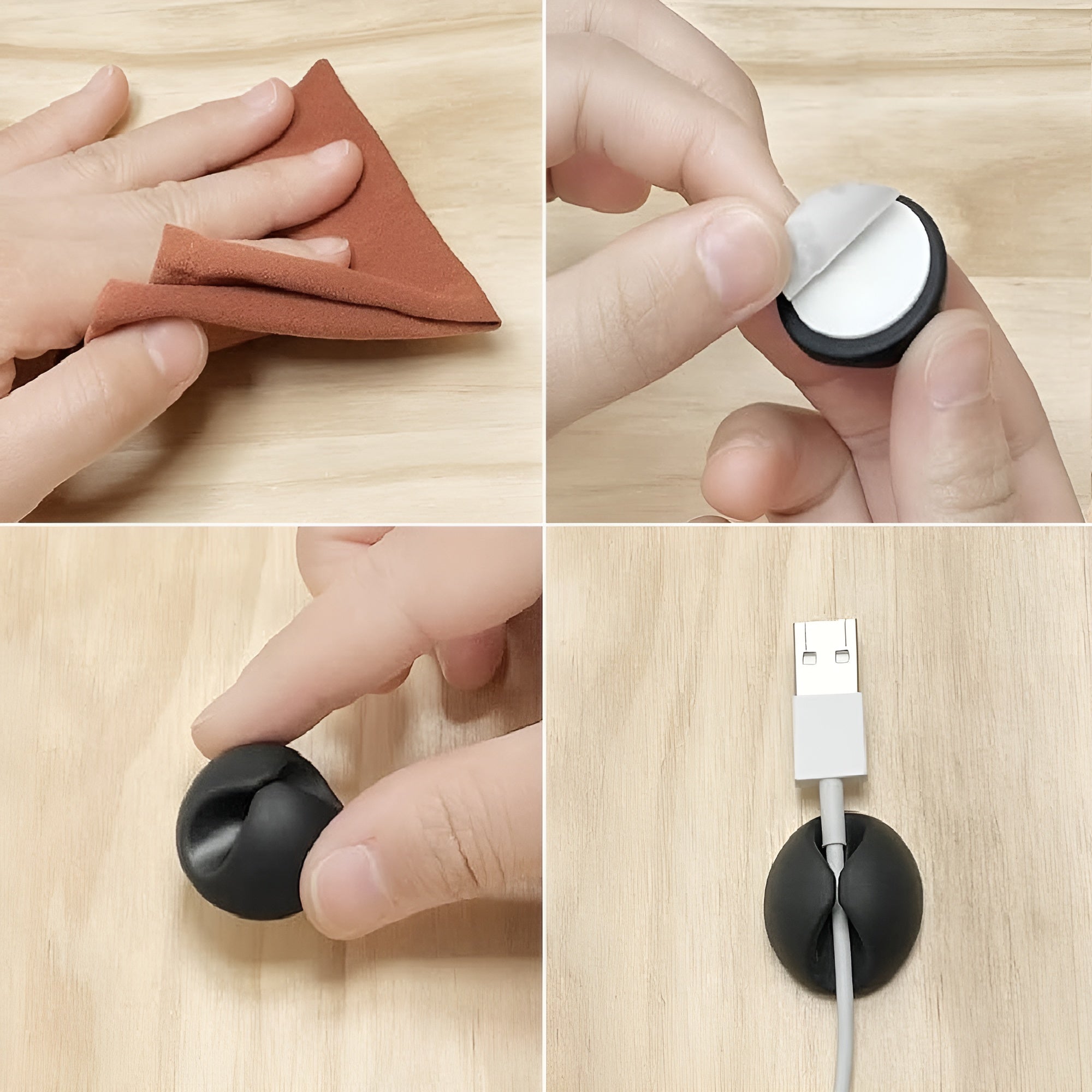 Fabricados en TPU de alta calidad, estos clips se adhieren firmemente a casi cualquier superficie: plástico, madera, vidrio, metal y más. No requieren herramientas ni perforaciones. Solo retira la película protectora de la base adhesiva, limpia la superficie deseada y presiona para fijar. En segundos, tendrás una solución práctica y duradera.