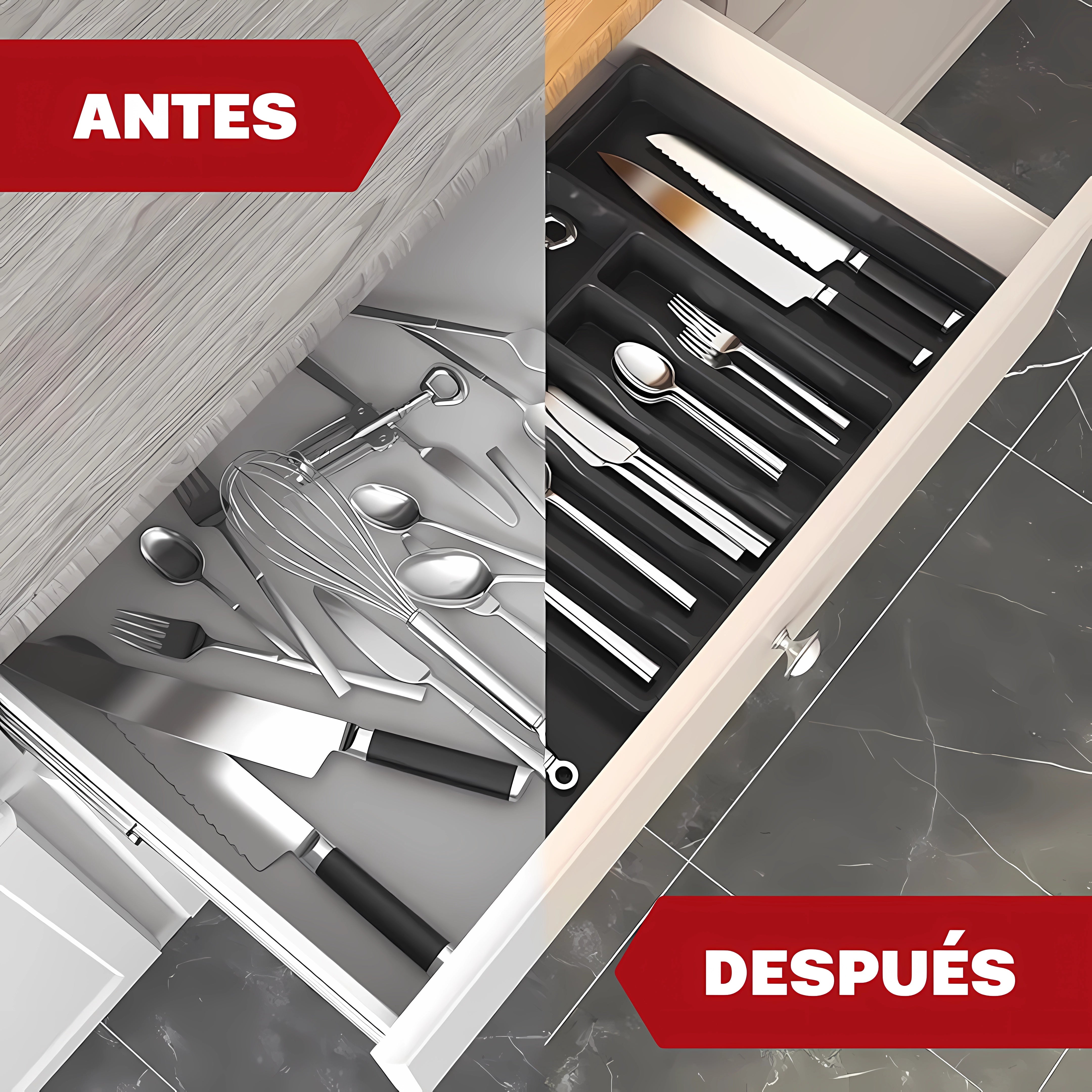 Diseño expandible: Se ajusta fácilmente al ancho del cajón, generalmente entre 38 cm y 60 cm.