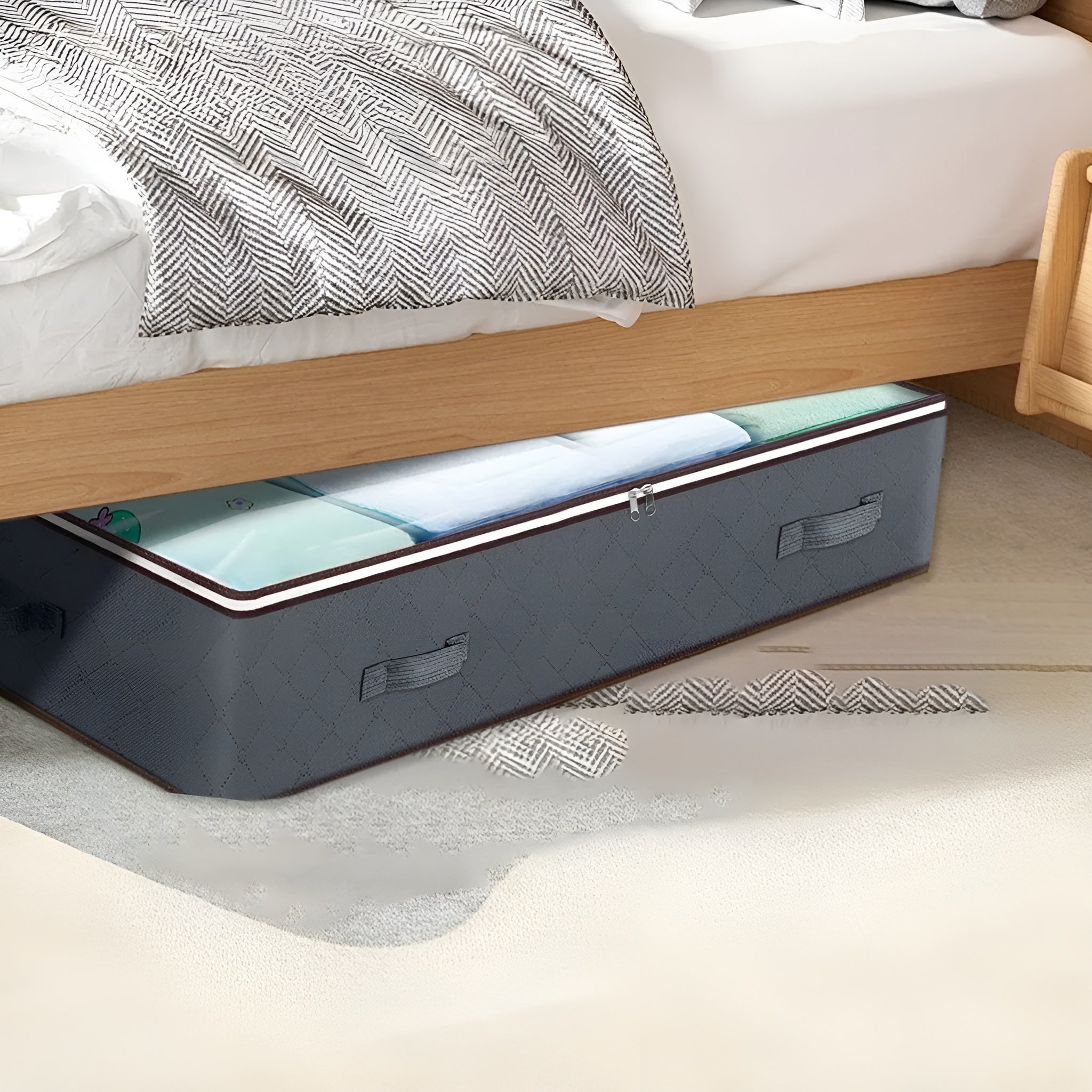 Instálalos fácilmente en cualquier rincón: debajo de la cama, dentro del armario o en estanterías bajas. Una forma eficiente y elegante de mantener tus pertenencias organizadas y fuera de la vista.