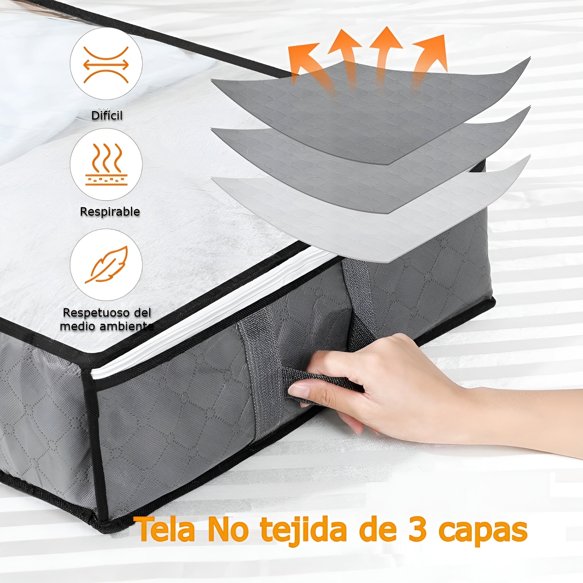 Ideales para guardar ropa fuera de temporada, edredones, zapatos, mantas o más de 20 prendas como chaquetas, suéteres y jeans. Su diseño sin tapas plásticas visibles aporta una estética limpia y moderna, perfecta para quienes buscan funcionalidad sin comprometer la apariencia.