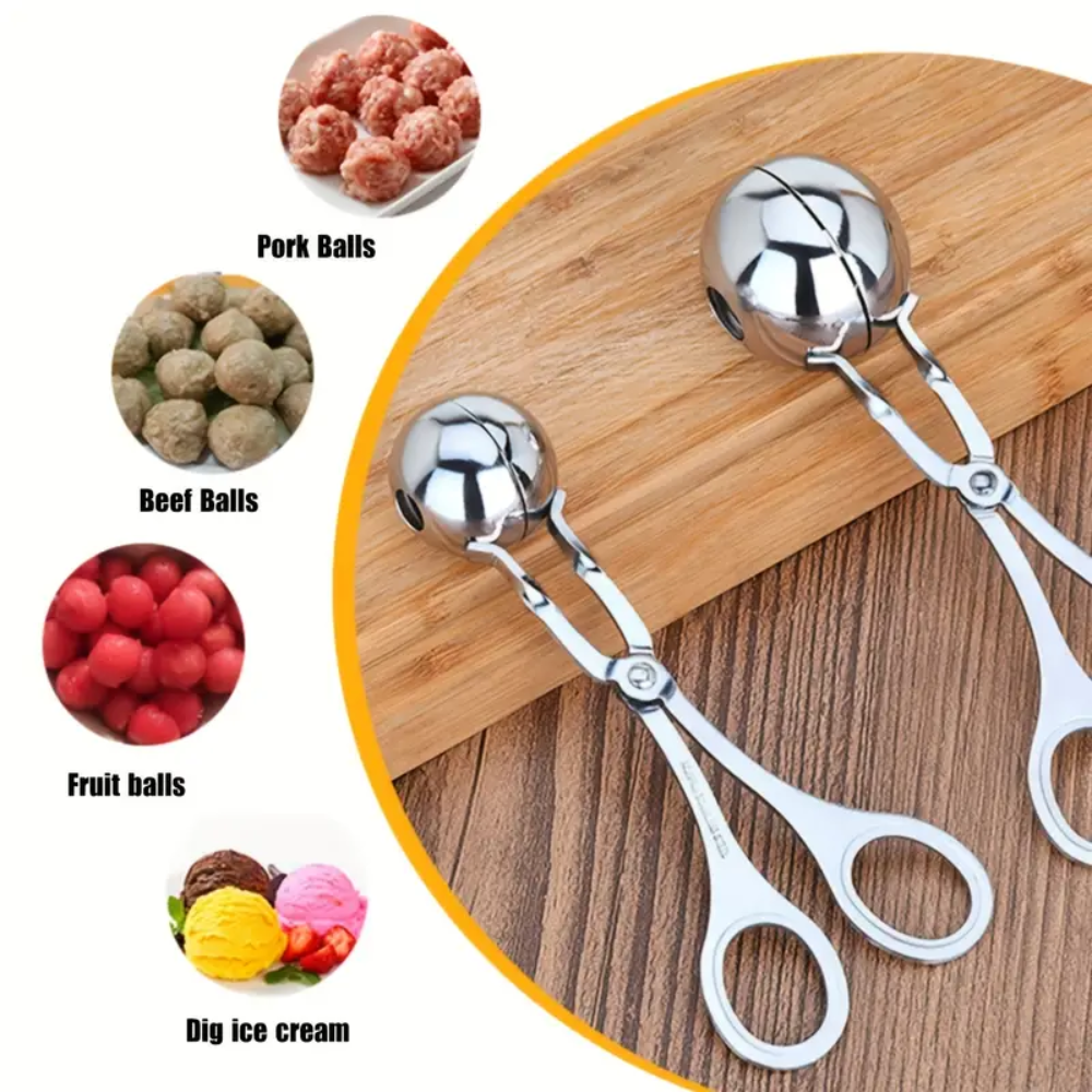 La pinza multifuncional está hecha de acero inoxidable apto para uso alimentario, su interior suave y su textura delicada pueden hacer albóndigas rápidas, de alta resistencia, resistentes a altas temperaturas, más saludables y duraderas.