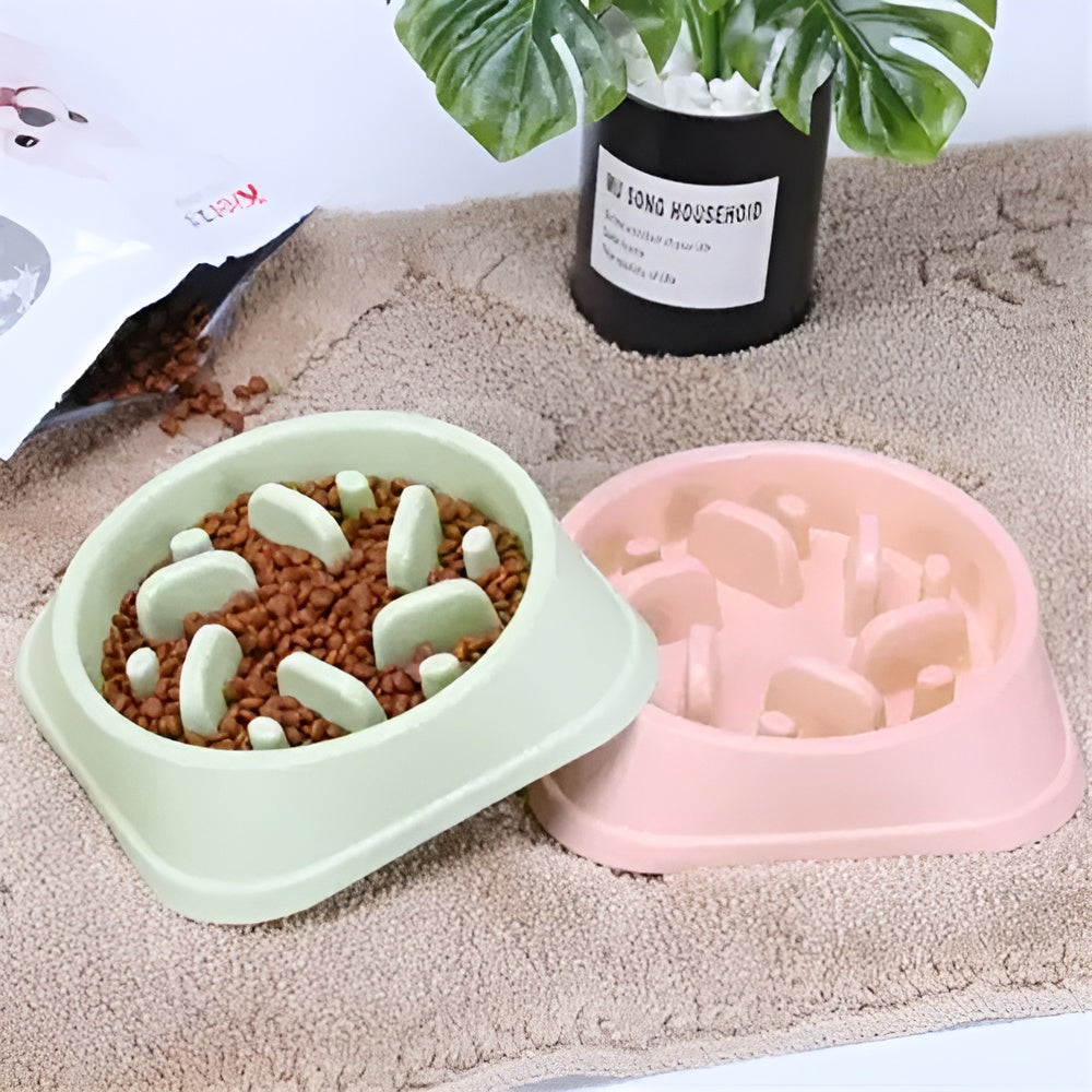 Su diseño inteligente ofrece un doble propósito: funciona como cuenco tradicional y también como cuenco de dieta, ya que su estructura única hace que cualquier cantidad de alimento rinda más, ayudando a que tu perro se sienta satisfecho con menos comida. Es apto para alimentos húmedos o secos, siendo una solución ideal para perros que suelen comer o beber demasiado rápido.