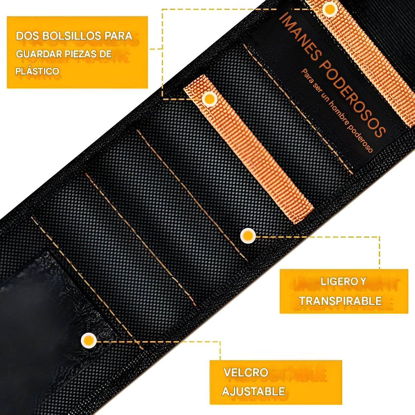 Equipada con 15 potentes imanes, mantiene de forma segura y confiable todas las piezas metálicas necesarias para tu trabajo, evitando pérdidas y desorden. Además, su diseño transpirable y ligero garantiza comodidad durante largas jornadas.