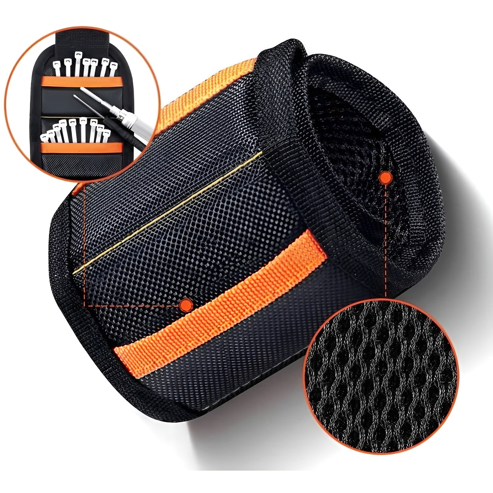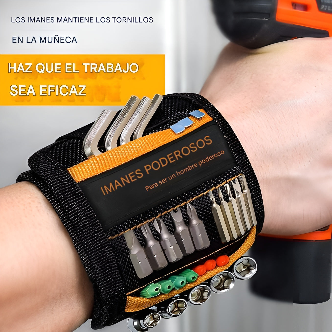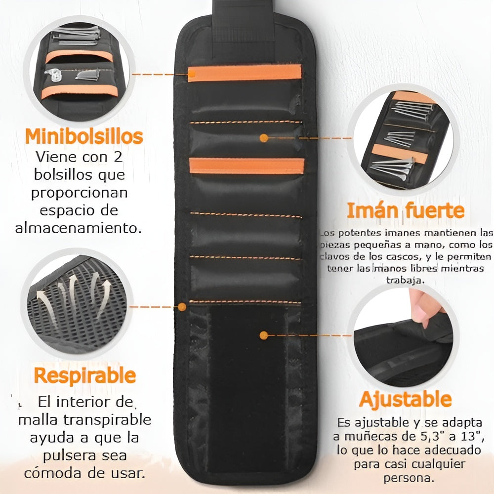 Con nuestra pulsera magnética, olvídate de tornillos y clavos esparcidos por el suelo y disfruta de una herramienta práctica, resistente y diseñada para hacer tu trabajo más eficiente.