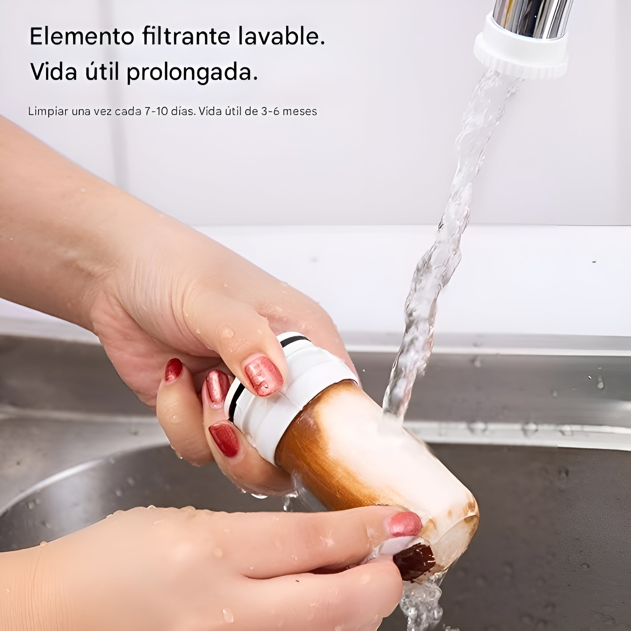 Su diseño incorpora una perilla reguladora de presión, que permite ajustar el chorro de agua según tus necesidades, ofreciendo comodidad y versatilidad en cada uso. El cartucho de cerámica tiene una duración aproximada de 6 meses y puede desmontarse, lavarse y reutilizarse, manteniendo un rendimiento constante. Se recomienda limpiar el filtro cada 7-10 días para prolongar su vida útil de 3 a 6 meses.