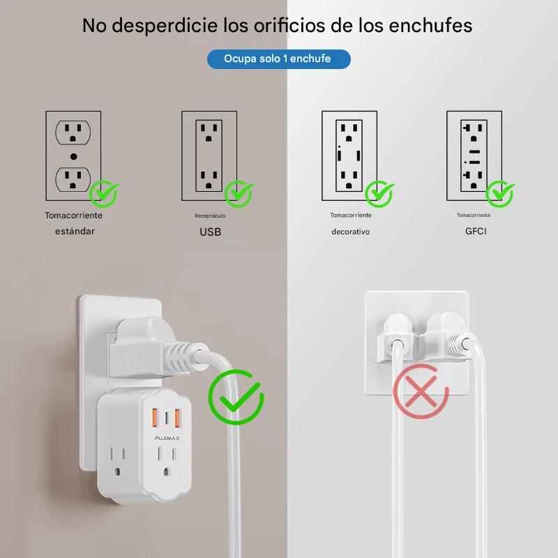 Leer más...Optimiza tu espacio y manten todos tus dispositivos cargados con este practico adaptador de pared PUJIMAX. Diseñado para hogares y oficinas modernas, este accesorio combina funcionalidad y estilo en un formato compacto.