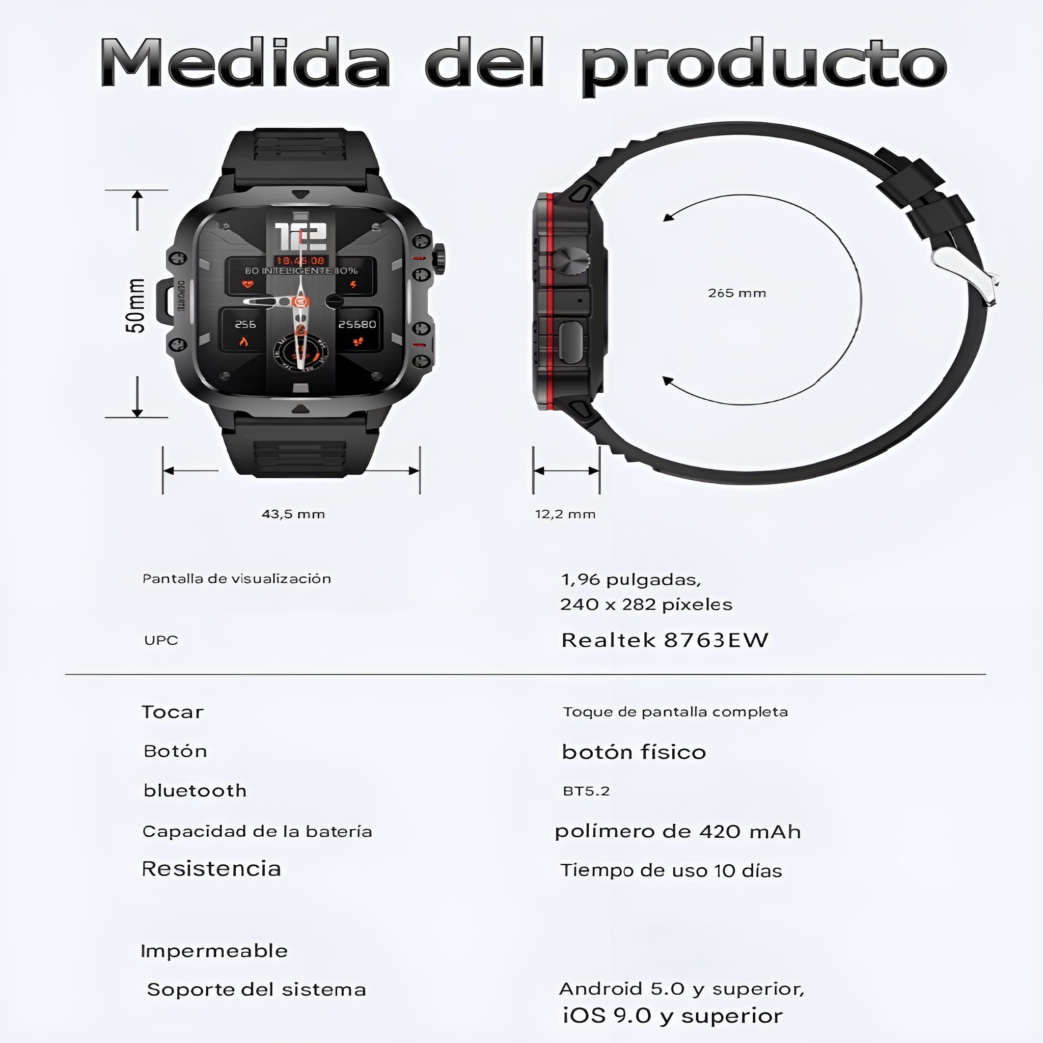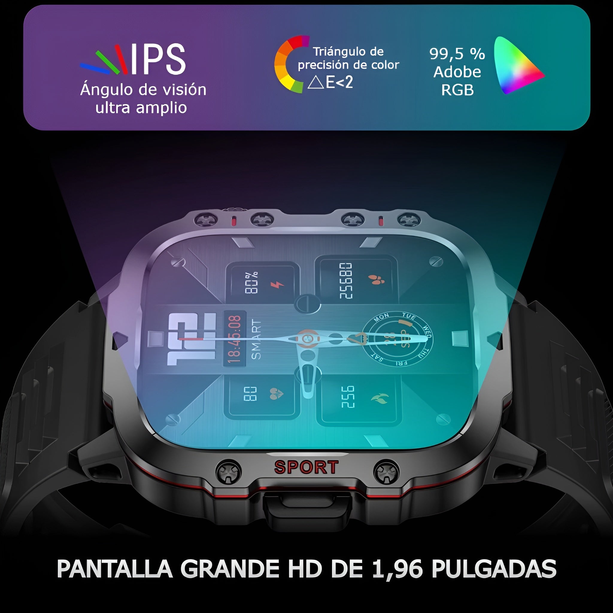 Leer más...Potencia, resistencia y tecnología se unen en este Reloj Inteligente Militar para Hombre, diseñado para quienes exigen rendimiento en cualquier entorno. Con una pantalla HD de 1.96 pulgadas, ofrece una experiencia visual superior y una navegación fluida, incluso bajo condiciones extremas.