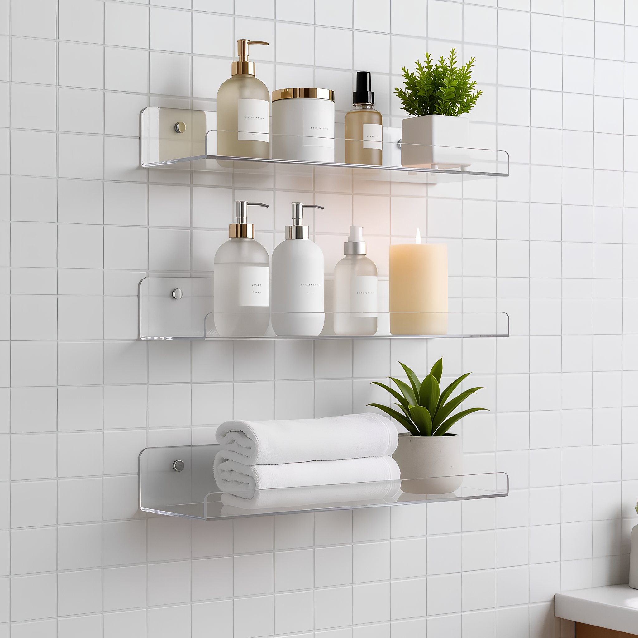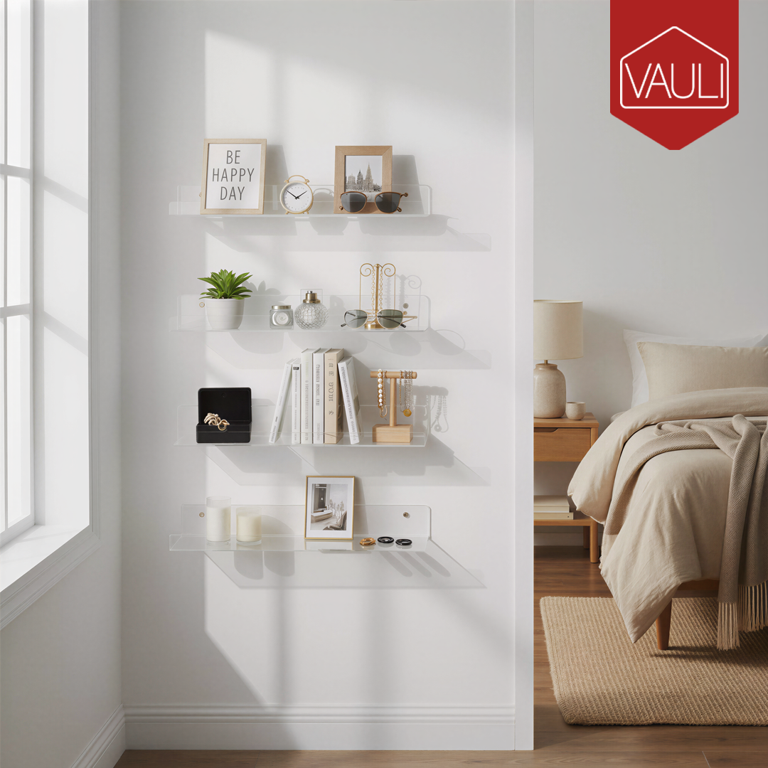 Este set de 4 estantes acrílicos para pared te ayuda a ahorrar espacio y mantener todo ordenado, aprovechando al máximo tus paredes. Su diseño transparente e invisible aporta un estilo moderno y elegante, ideal para dormitorio, sala, baño o cocina. Están fabricados en acrílico resistente, soportan hasta 8.8 libras y cuentan con bordes pulidos y un tope frontal para mayor seguridad. Además, incluyen todo lo necesario para una instalación rápida y sencilla en pocos minutos, ofreciendo excelente valor y funcionalidad para cualquier hogar.