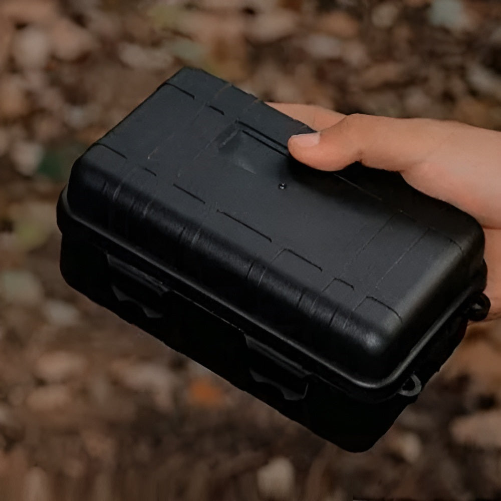 Su diseño liviano y portátil permite guardarlo fácilmente en mochilas, guanteras, bolsos o sujetarlo a cinturones y correas. La caja es resistente al agua y a los impactos, protegiendo el contenido en condiciones extremas.