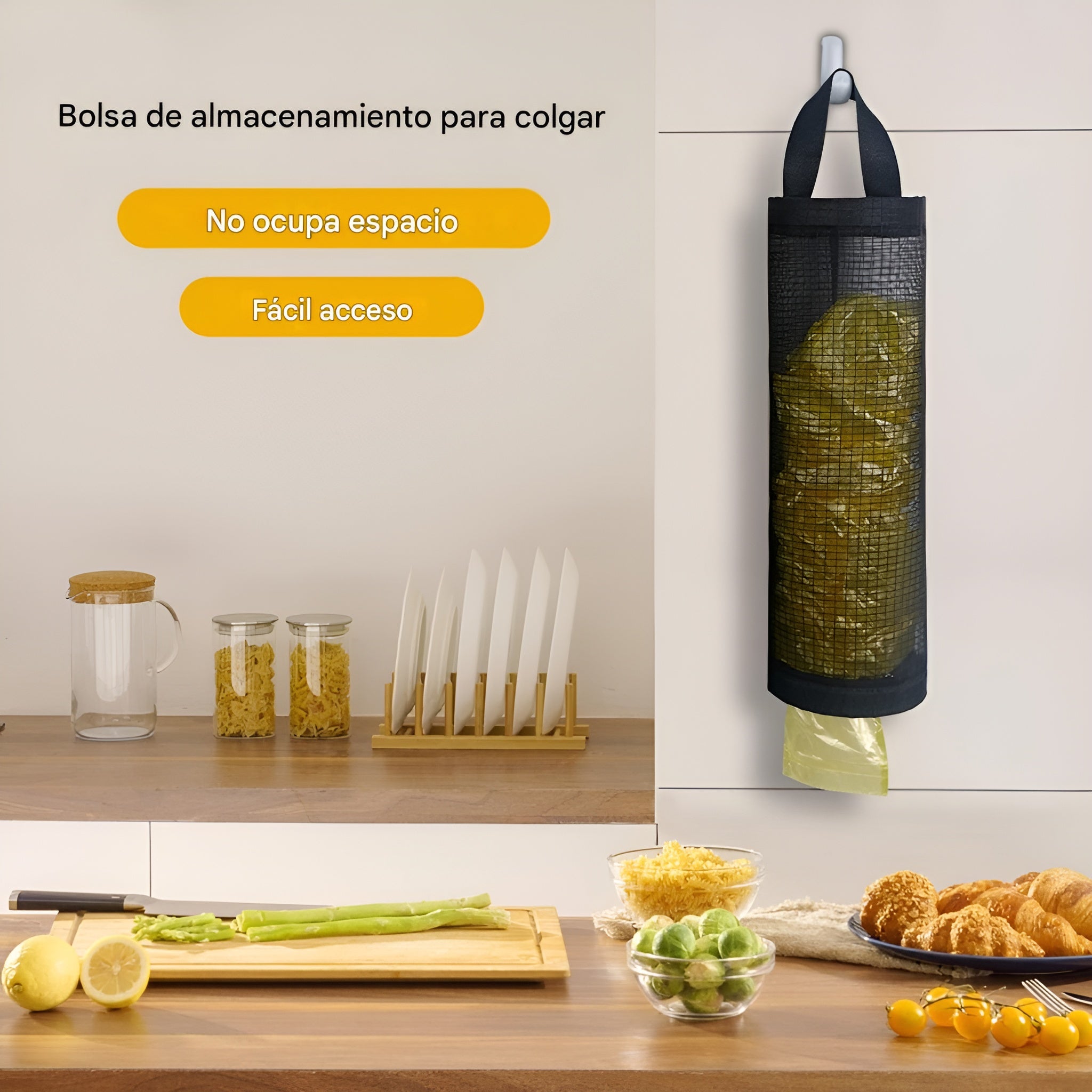 El Organizador de Bolsas Colgante es la solución práctica para mantener tus bolsas de plástico siempre ordenadas y al alcance. Su diseño compacto aprovecha el espacio vertical, evitando el desorden y ofreciendo comodidad en cocinas, garajes o áreas de almacenamiento sin ocupar lugar adicional.