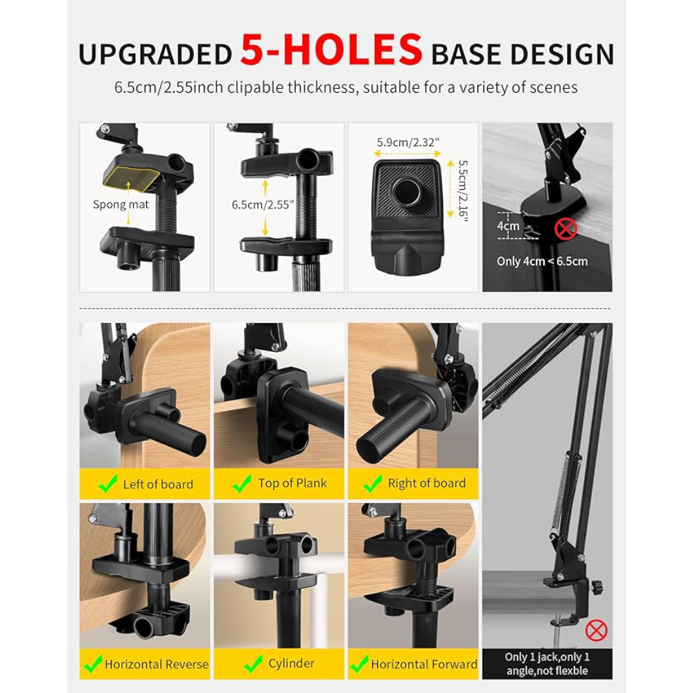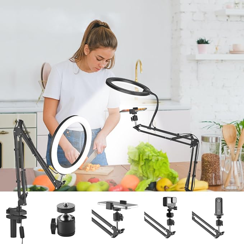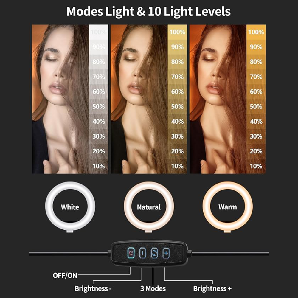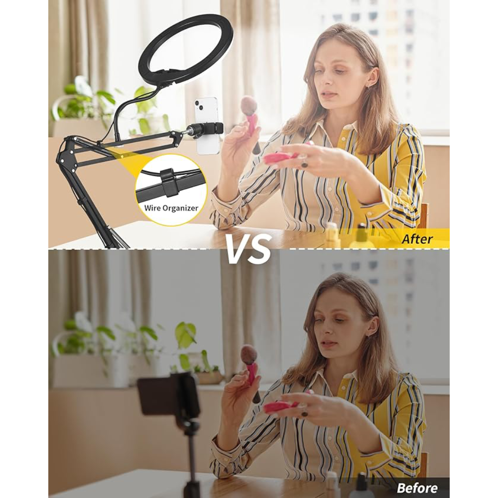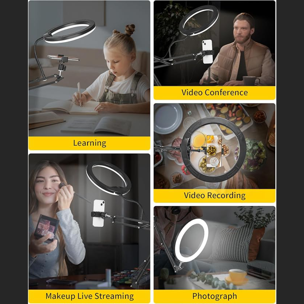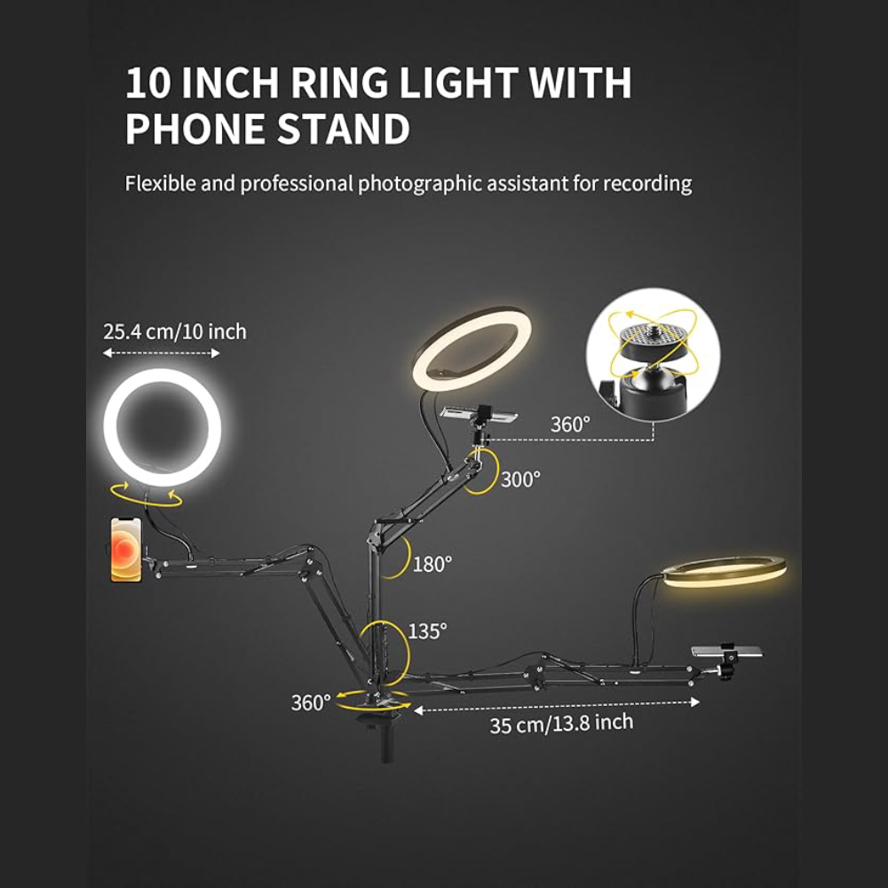 Anillo de luz de computadora regulable de 10 pulgadas con soporte y soporte para teléfono tiene 3...