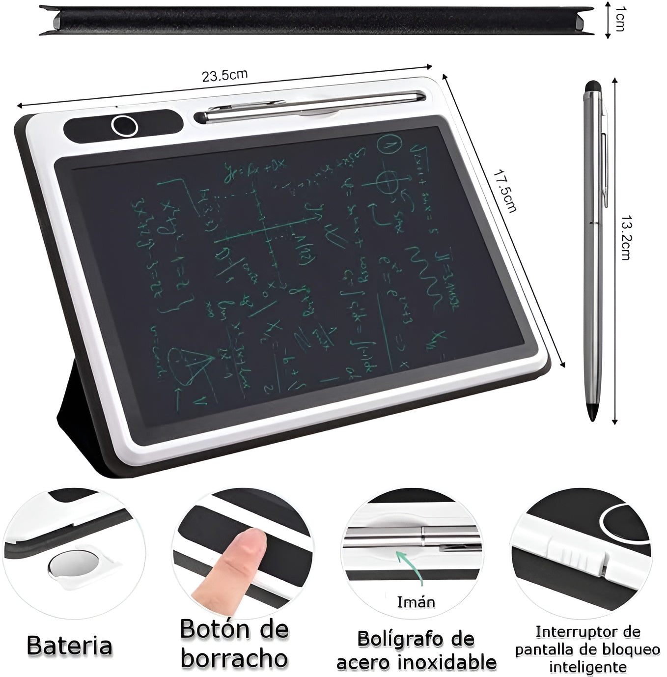 Diseño práctico: Se puede colocar en un soporte o usar como cuaderno digital. Su gran área de escritura ofrece espacio suficiente para ideas, listas o dibujos.