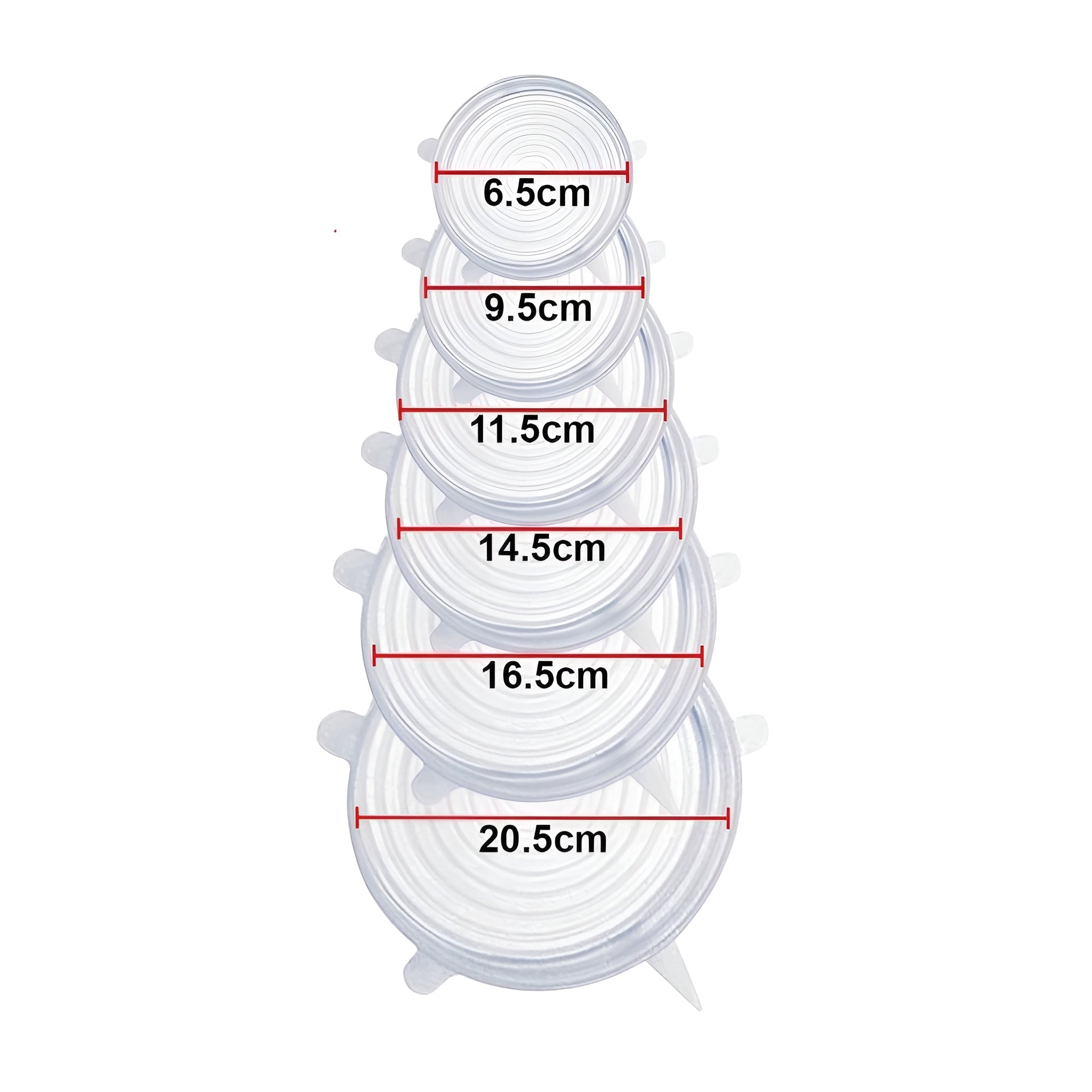 Paquete de 6 unidades: Tapas de 6.5 cm a 20.5 cm, ideales para vasos, tazones, ollas, frutas cortadas y más.