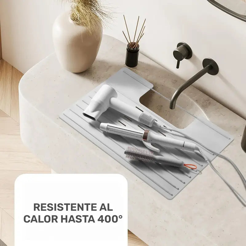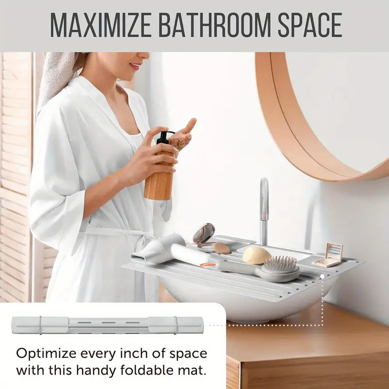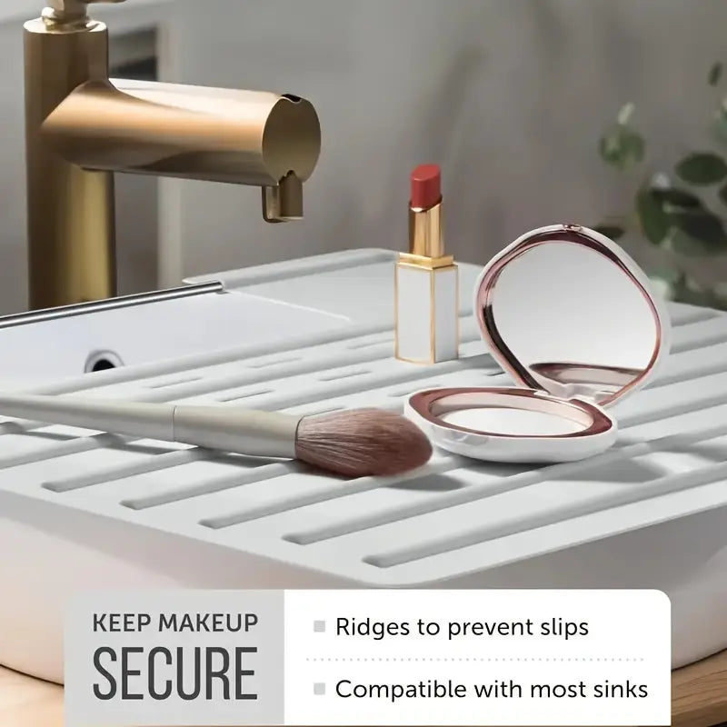 la cubierta para lavabo de baño Maplefield y la alfombrilla de maquillaje de silicona transforma tu fregadero...