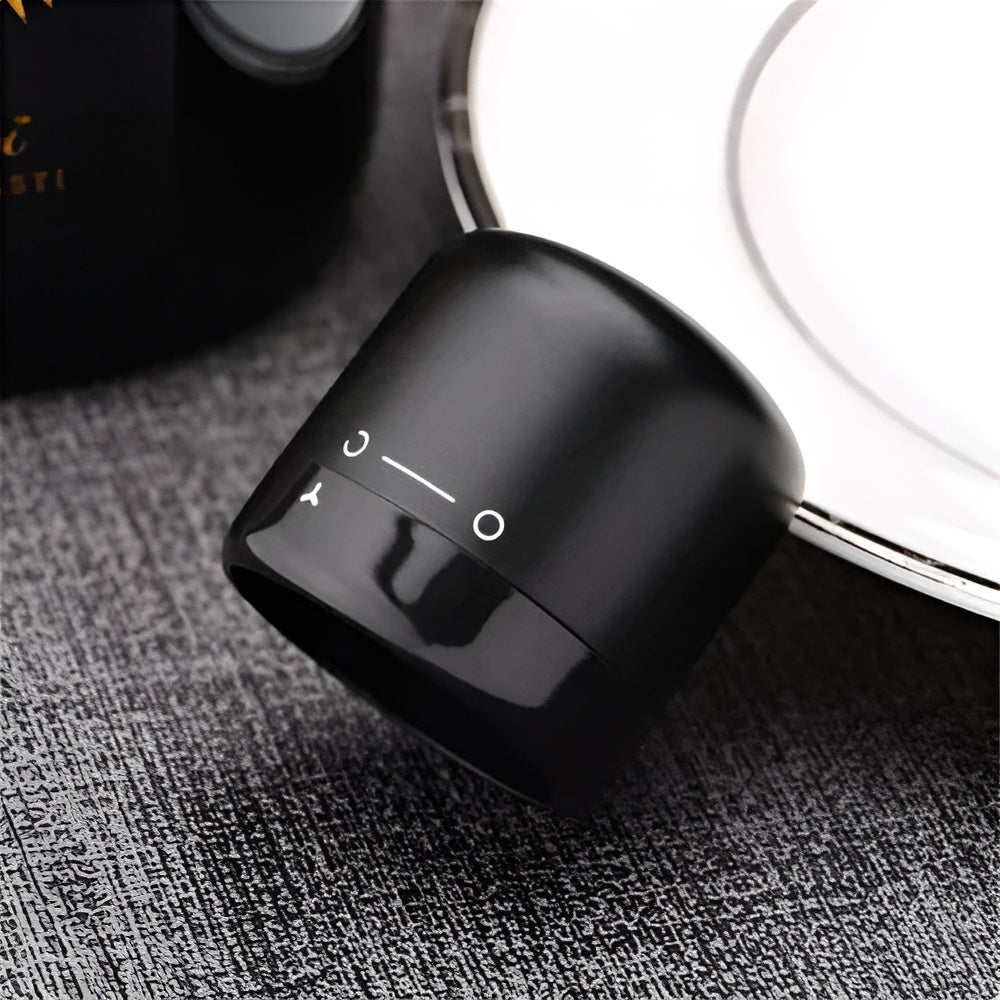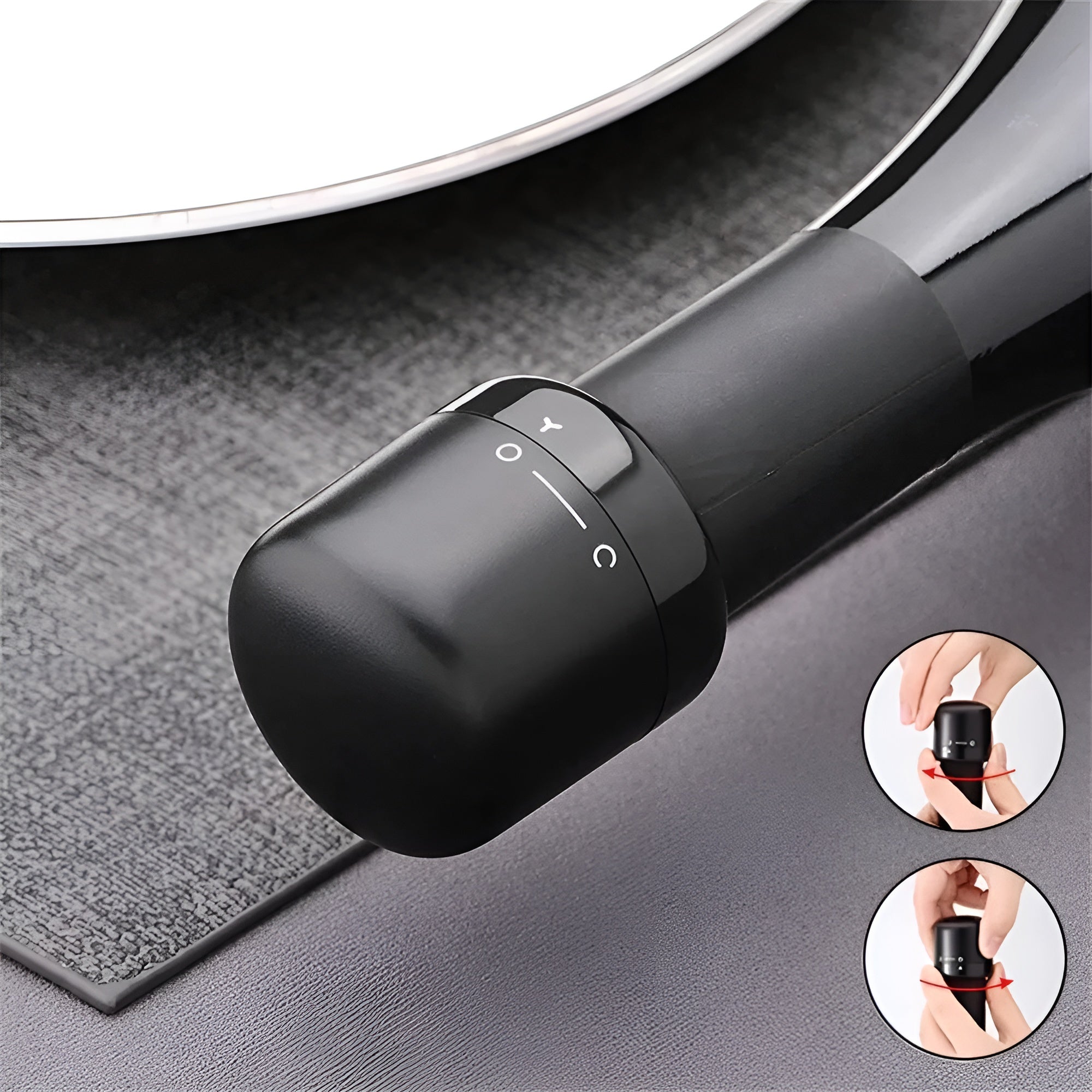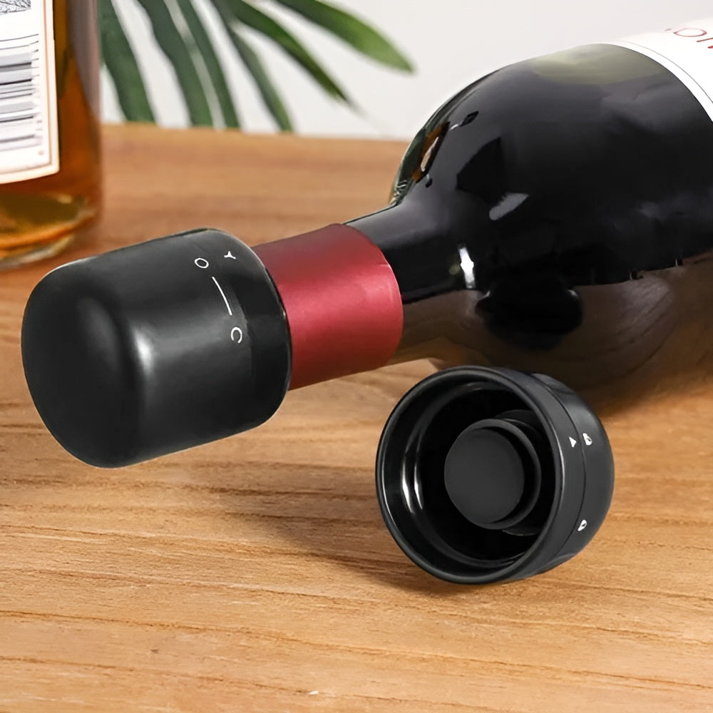 Fabricado con ABS y silicona de grado alimenticio, este tapón es no tóxico, seguro para el cuerpo humano y altamente resistente. Su sello de goma al vacío garantiza un cierre 100% hermético, evitando fugas y derrames incluso si la botella se inclina. Conserva el vino hasta 8 días y la champaña hasta 7 días, manteniendo intactos el aroma y el sabor original.