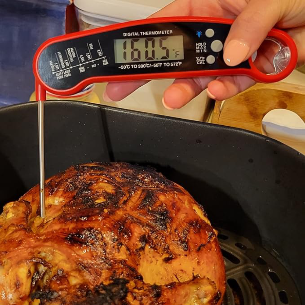 Este termómetro de lectura instantánea ultra rapido es una herramienta imprescindible para todos los amantes de la cocina. Ya sea que estés horneando un enorme pavo para las festividades, preparando deliciosos chocolates caseros o simplemente controlando la temperatura del agua de tu baño, este termómetro te brinda la precisión y la rapidez que necesitas.