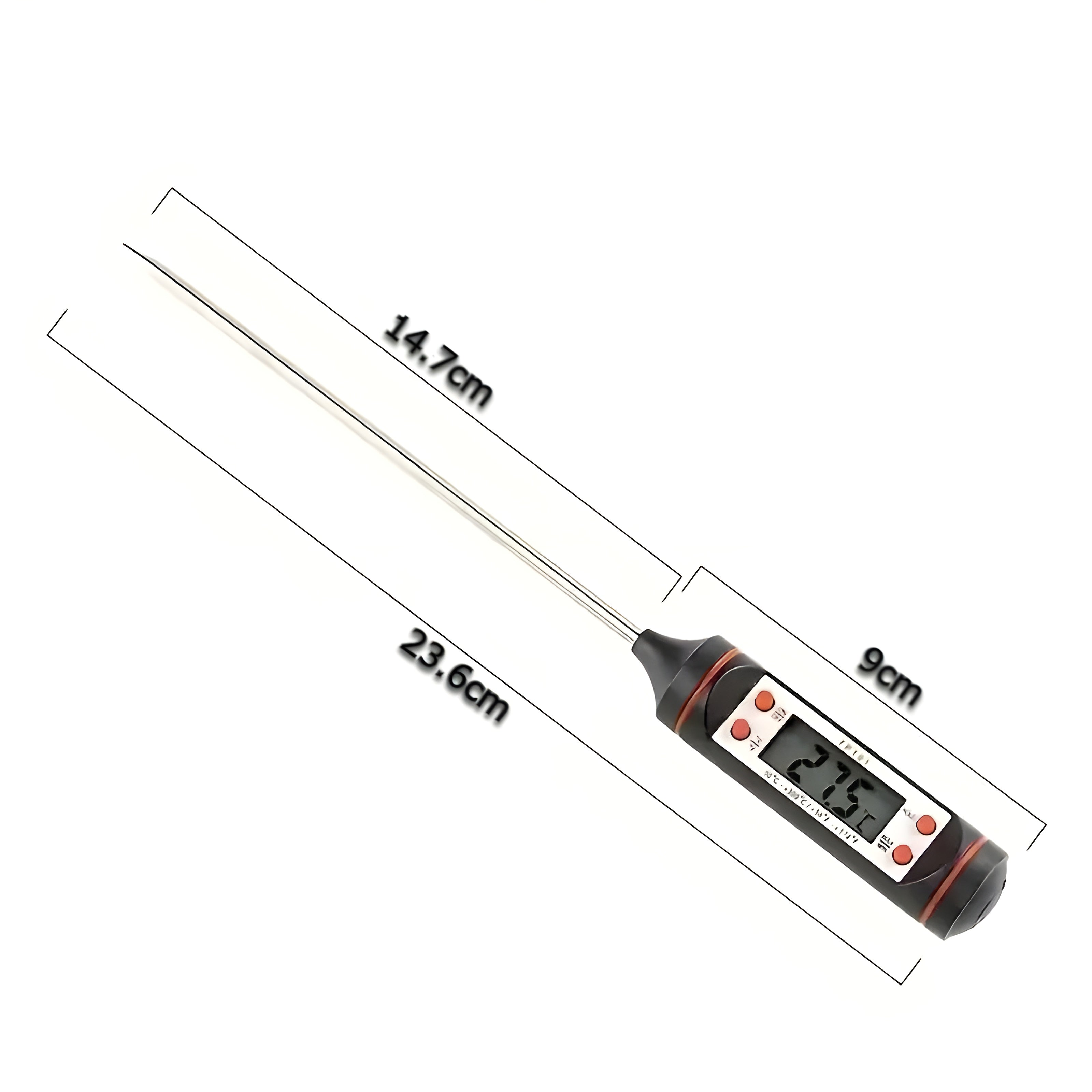 Aguja de acero inoxidable y mango aislante: Garantiza durabilidad y seguridad, permitiendo mediciones cómodas sin riesgo de quemaduras.