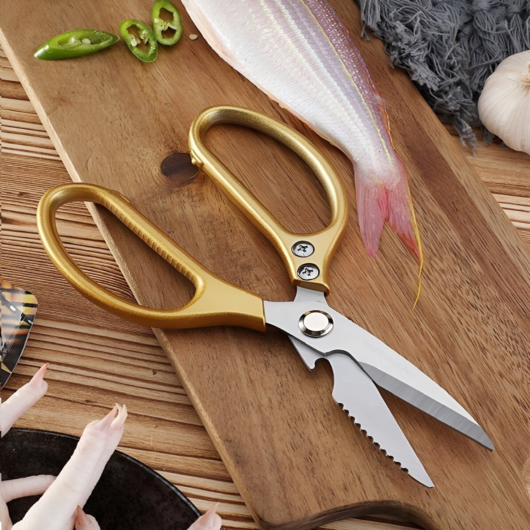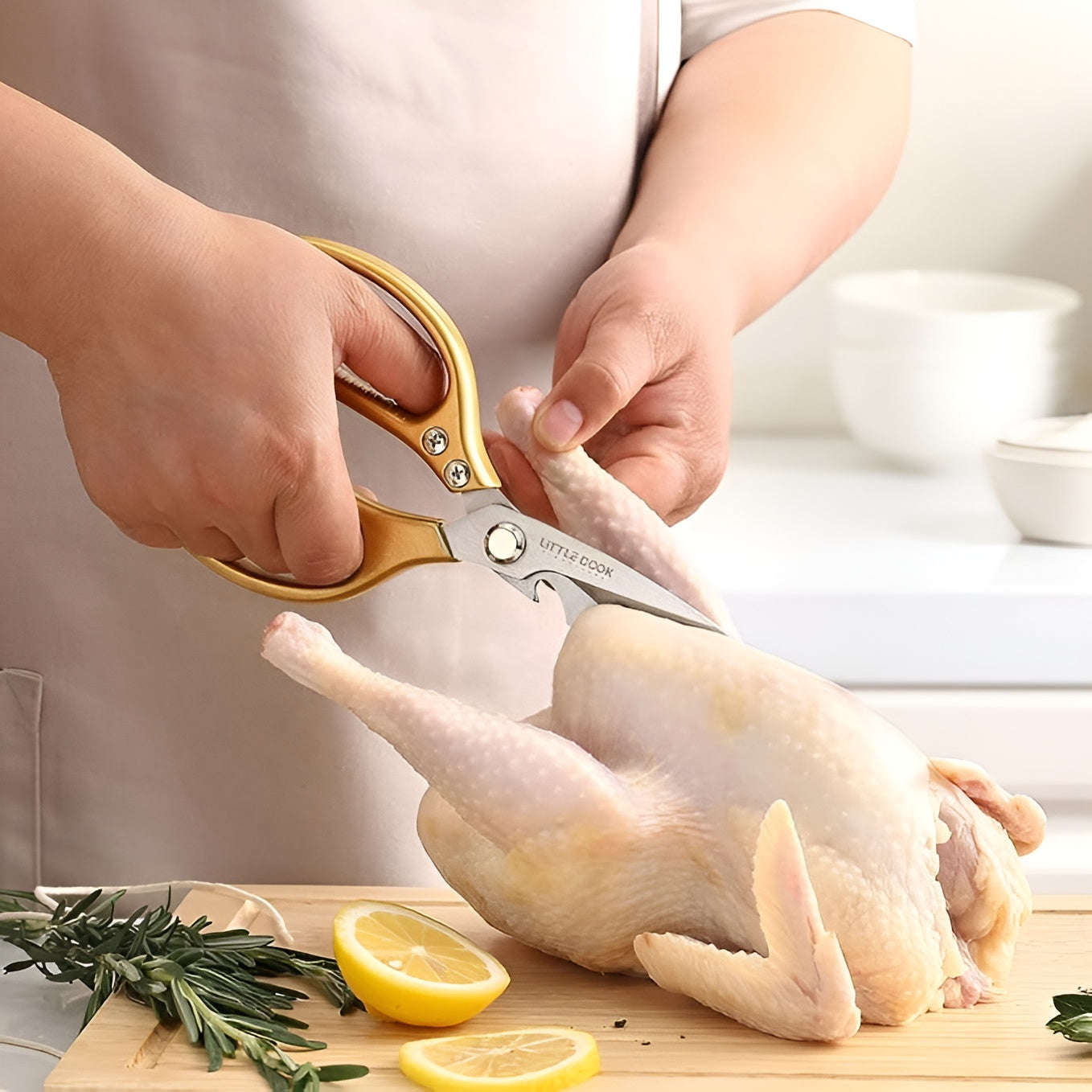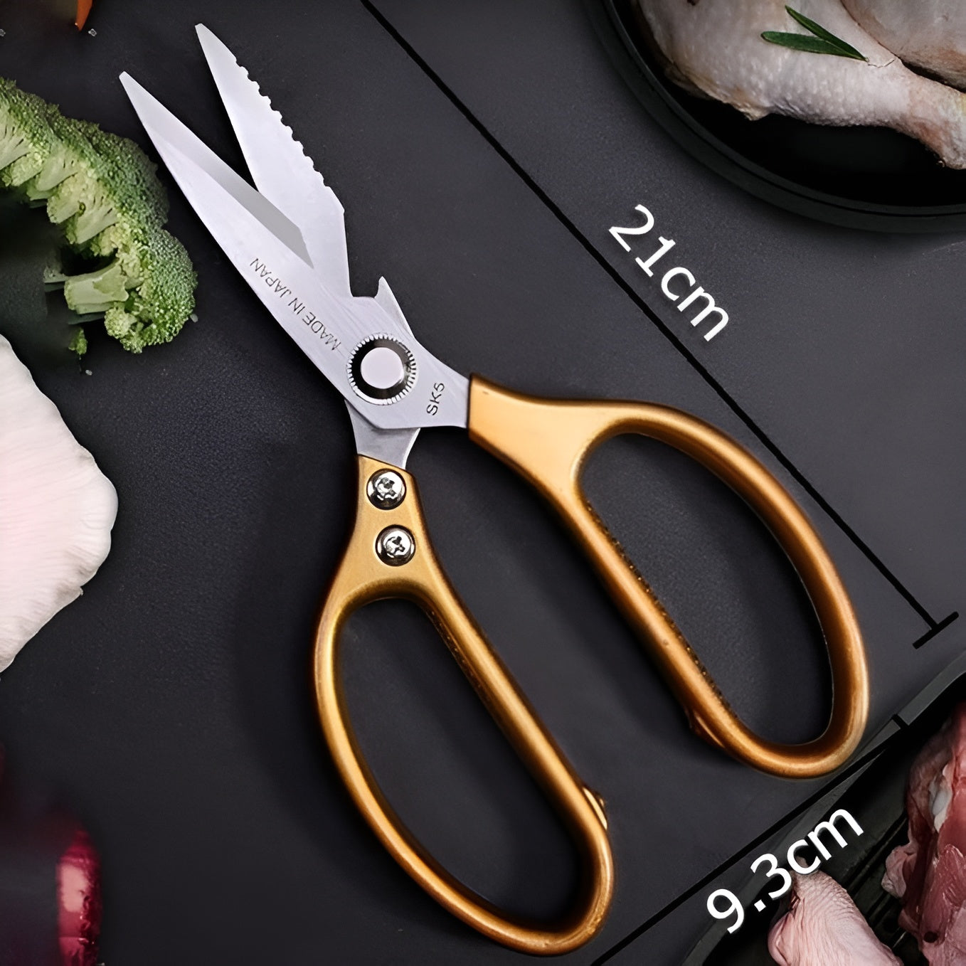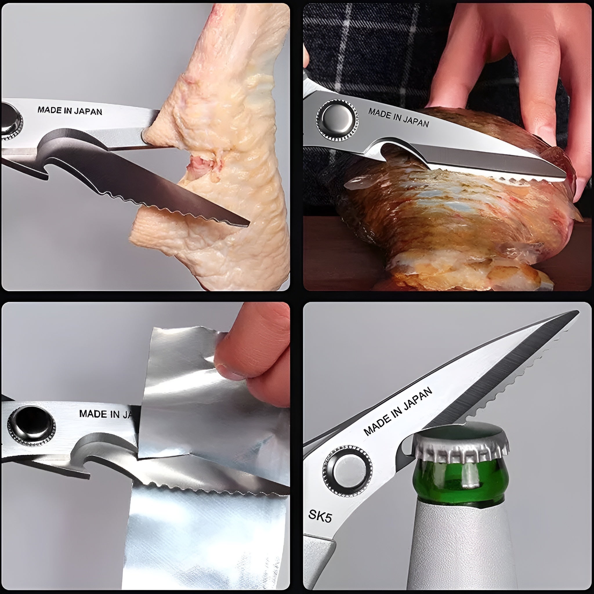 Simplifica tus tareas culinarias y domésticas con estas tijeras multifuncionales de acero inoxidable, diseñadas para ofrecer potencia, precisión y versatilidad en cada uso.