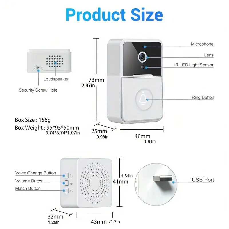 Timbre inteligente y práctico: nuestro timbre inteligente es una conexión WiFi inalámbrica, que realiza intercomunicador bidireccional entre...