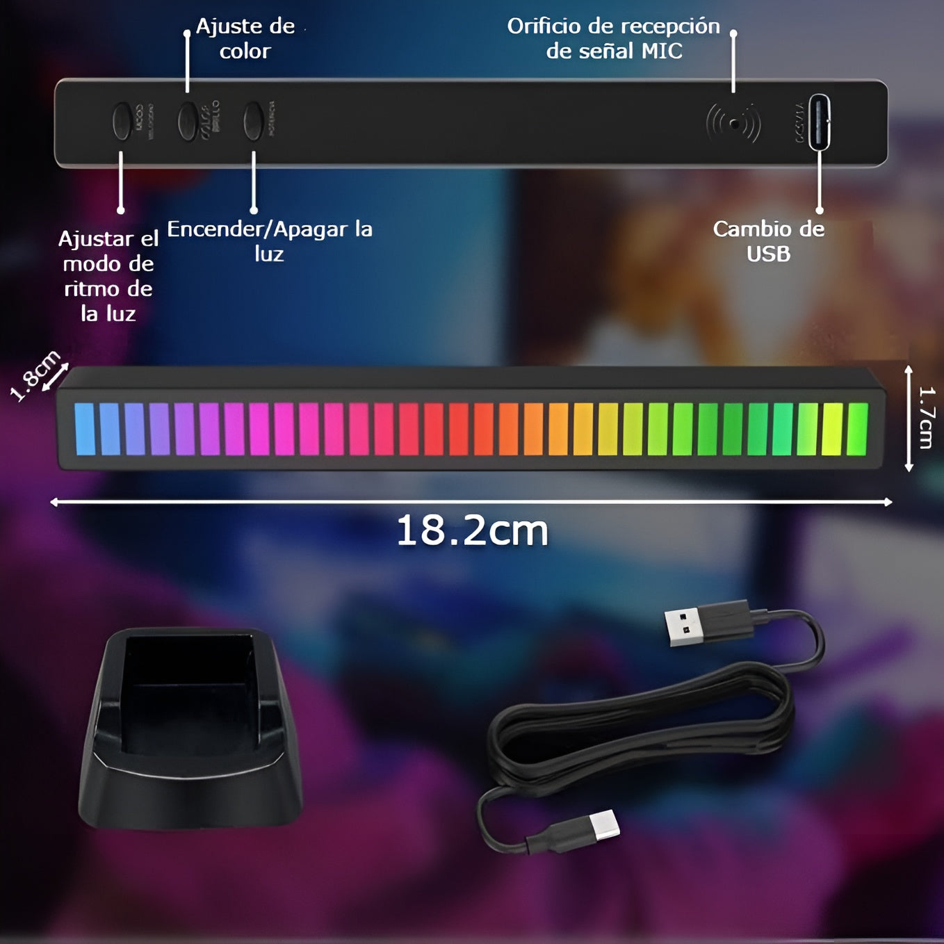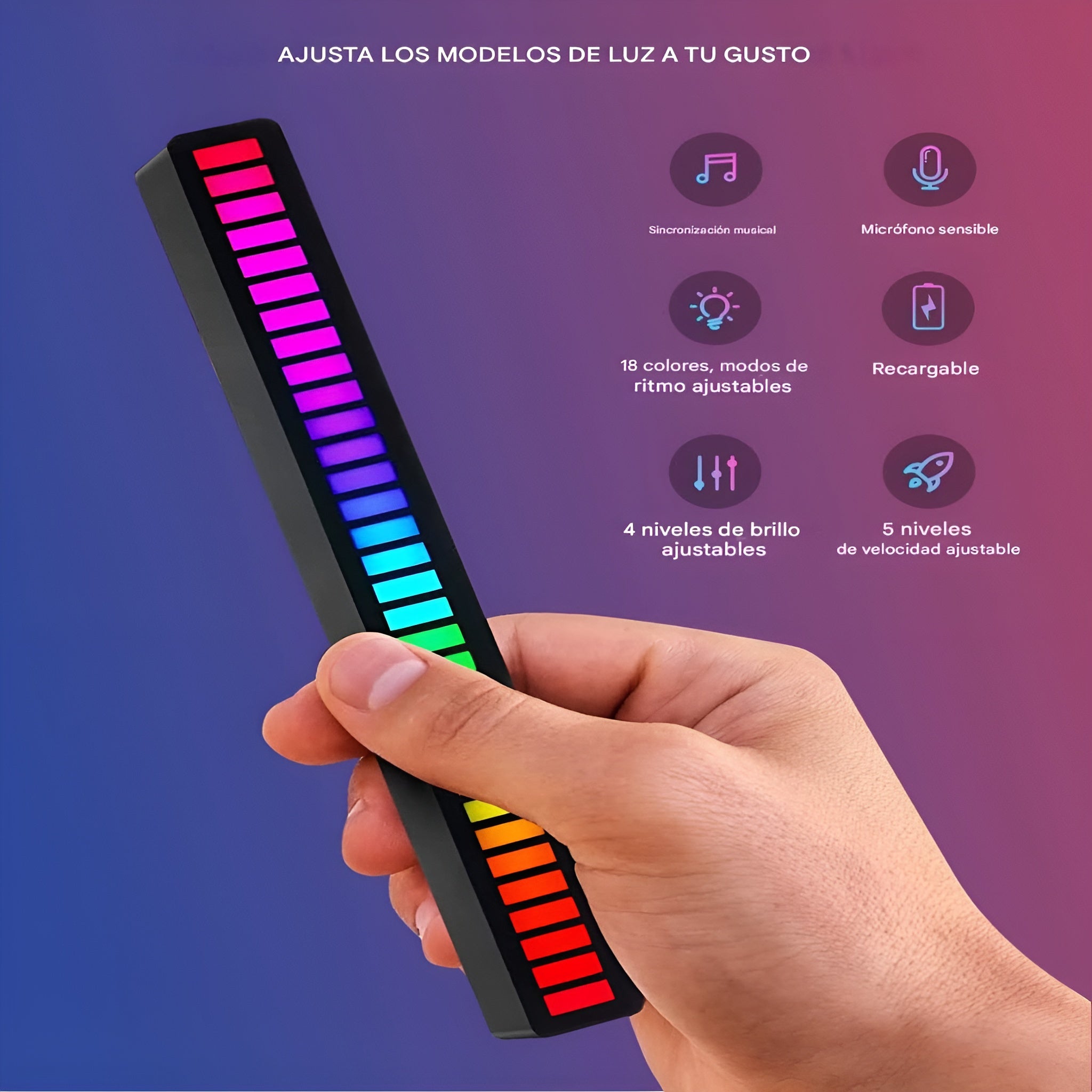La Barra de Luz RGB de Ritmo es un accesorio innovador que transforma cualquier espacio en una experiencia visual única. Gracias a su micrófono de alta sensibilidad, las luces se encienden y reaccionan al ritmo del sonido o la música, creando un ambiente dinámico y envolvente para juegos, películas, música o momentos de ocio.