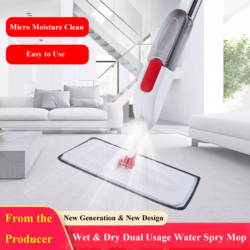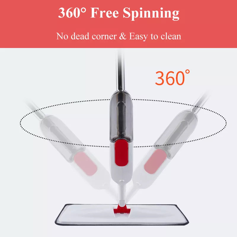 Mopa de Spray Plano 2 en 1 con Dispensador de Líquido y Mango Giratorio de 360 Grados de Alta Absorción en Microfibra para la Limpieza de Superficies de Suelos de Mármol Húmedos y Secos