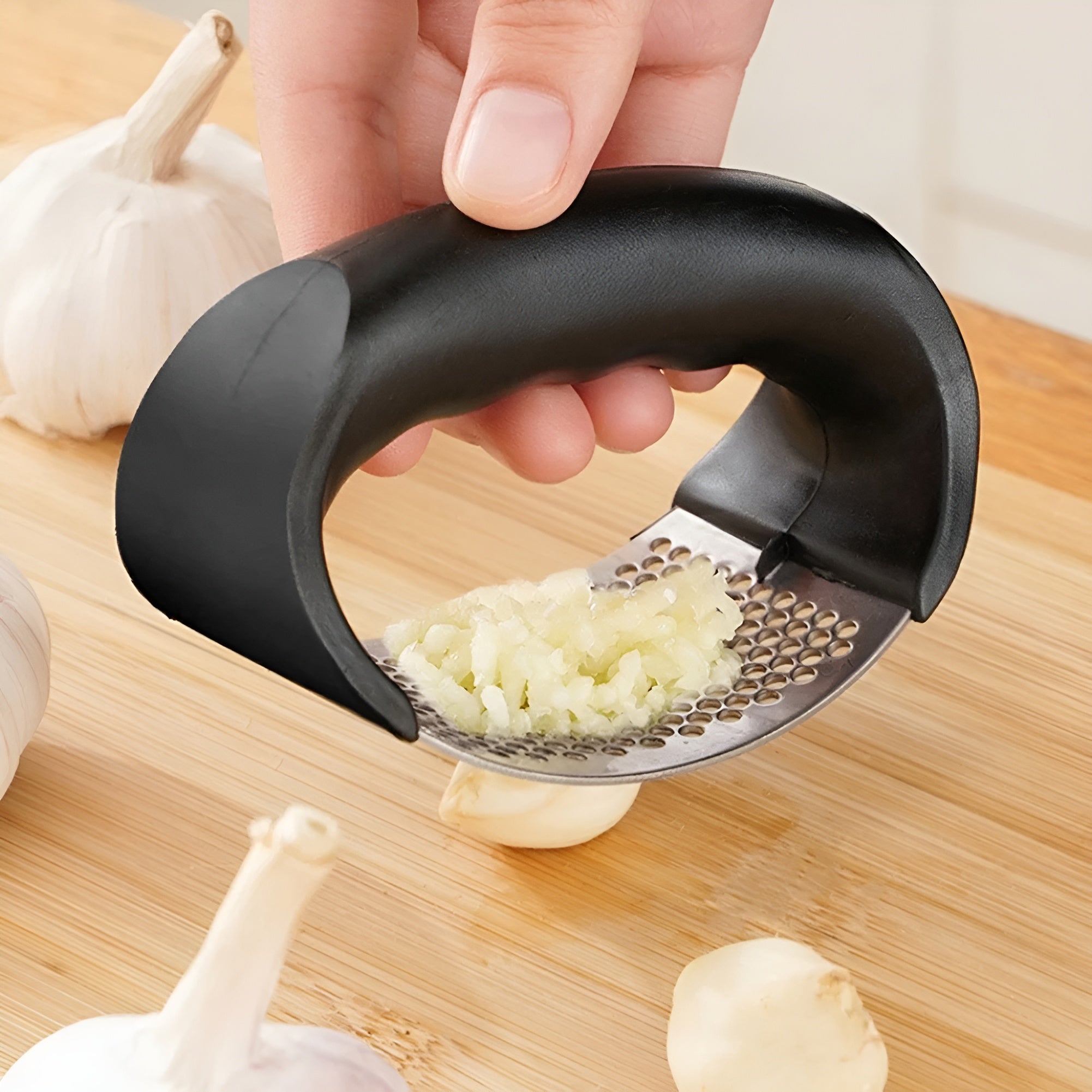 Su funcionalidad versátil lo convierte en un aliado indispensable: no solo pica ajo, sino que también funciona como cortador de verduras y frutas, ayudándote a preparar ingredientes de manera eficiente para cualquier receta.
